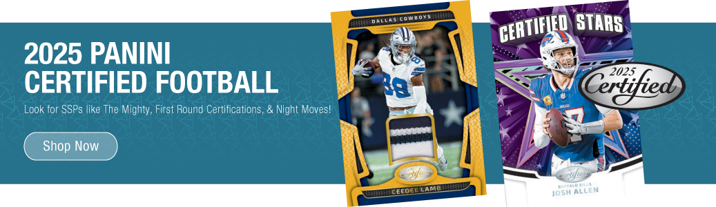 We strive to bring our customers a large selection of football cards at the best prices. Here you will find boxes, cases, packs, and sets of football cards from Upper Deck, Topps, Panini America and other major manufacturers. We stock all of the newest releases in football card hobby boxes and cases and our selection dates all the way back to vintage football cards of the 1950's.